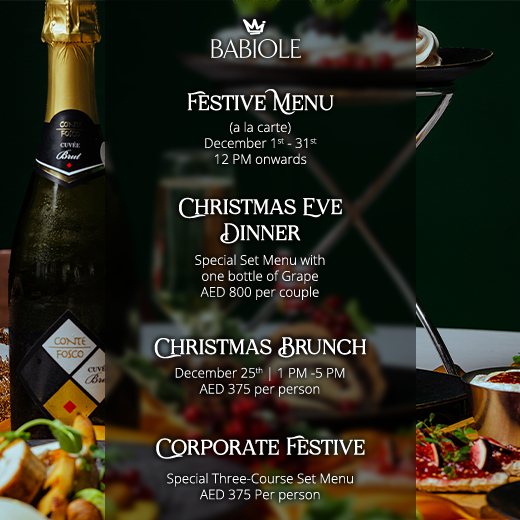 Let Babiole be your destination for a memorable and enriching experience in the heart of Dubai. Visit us today at Al Habtoor City, Sheikh Zayed Rd, Dubai and embark on a gastronomic adventure like no other. We look forward to welcoming you!